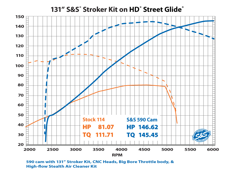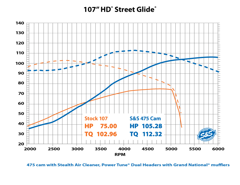 S&S 475 cam shown in conjunction with S&S Exhaust and S&S Stealth Air Cleaner vs. Stock 2017 Touring bike. BOLT-IN 100 Horsepower!