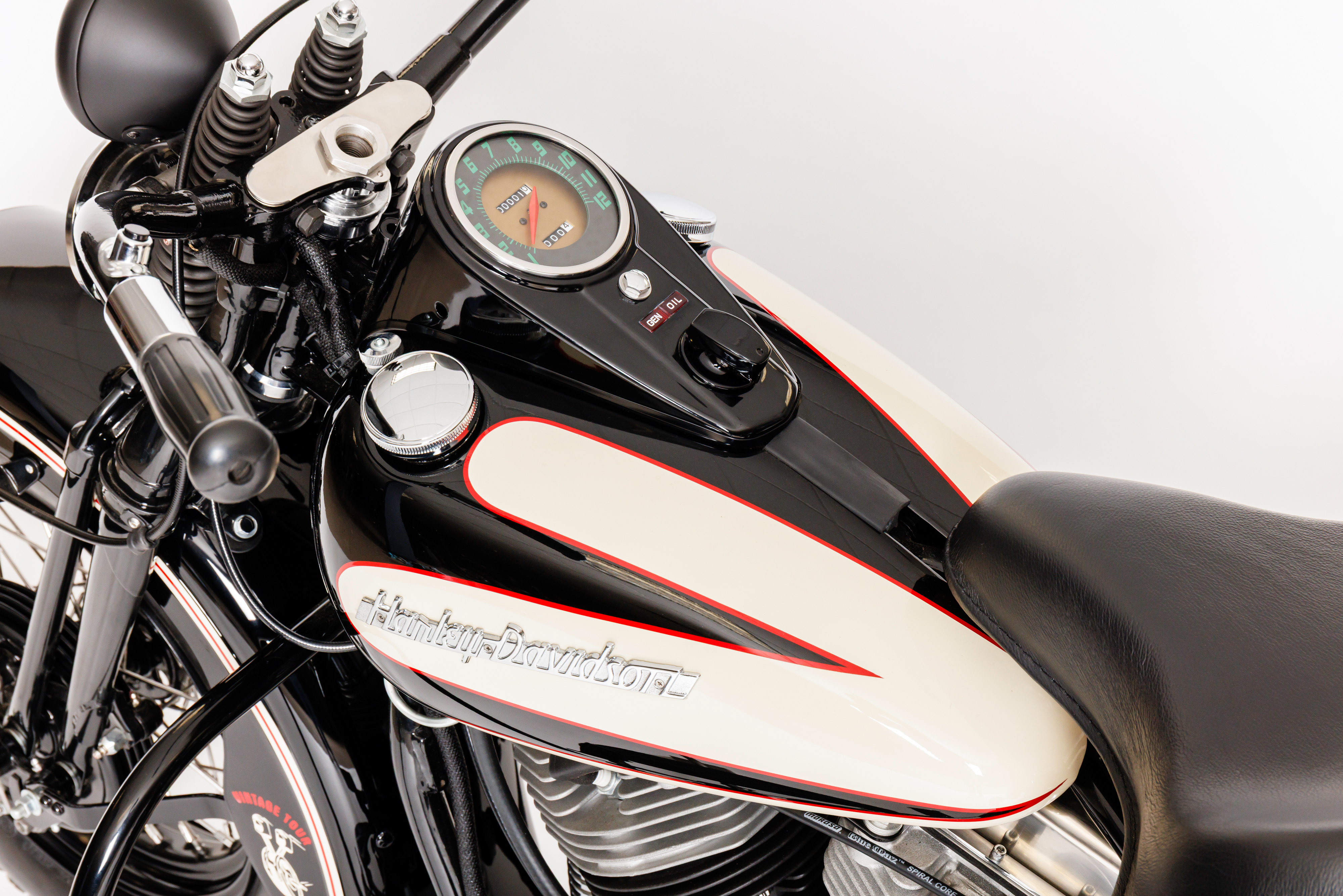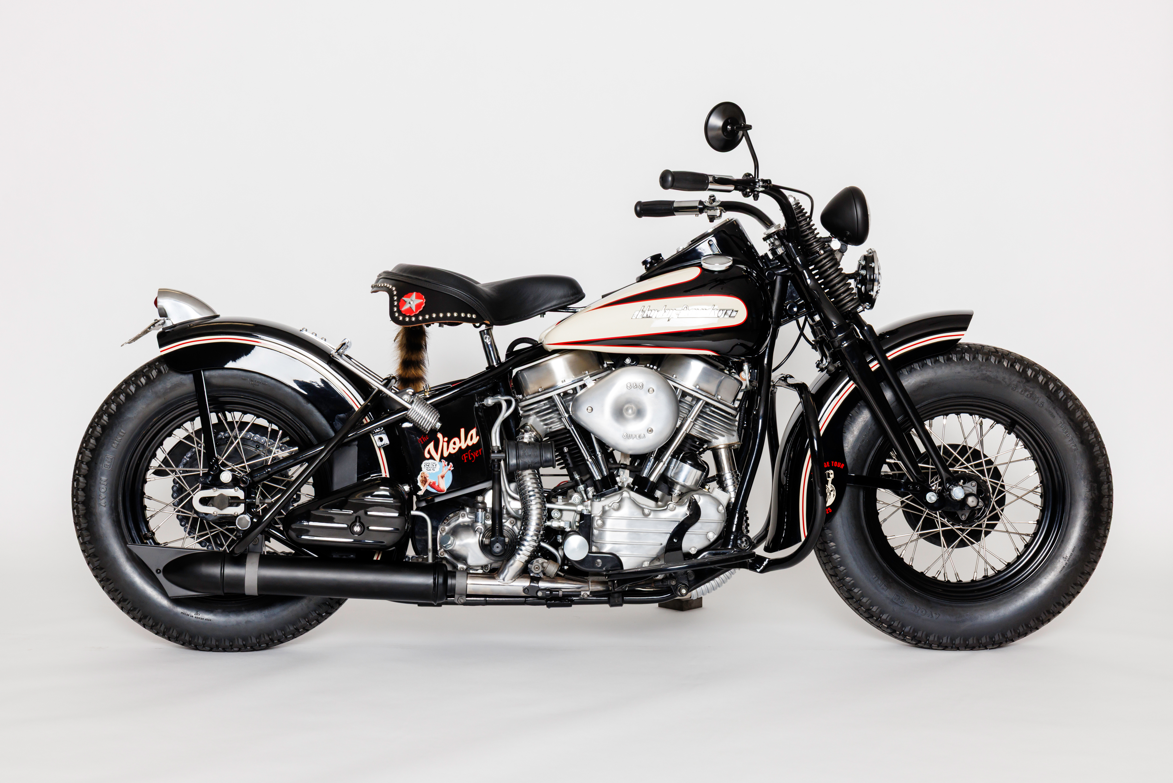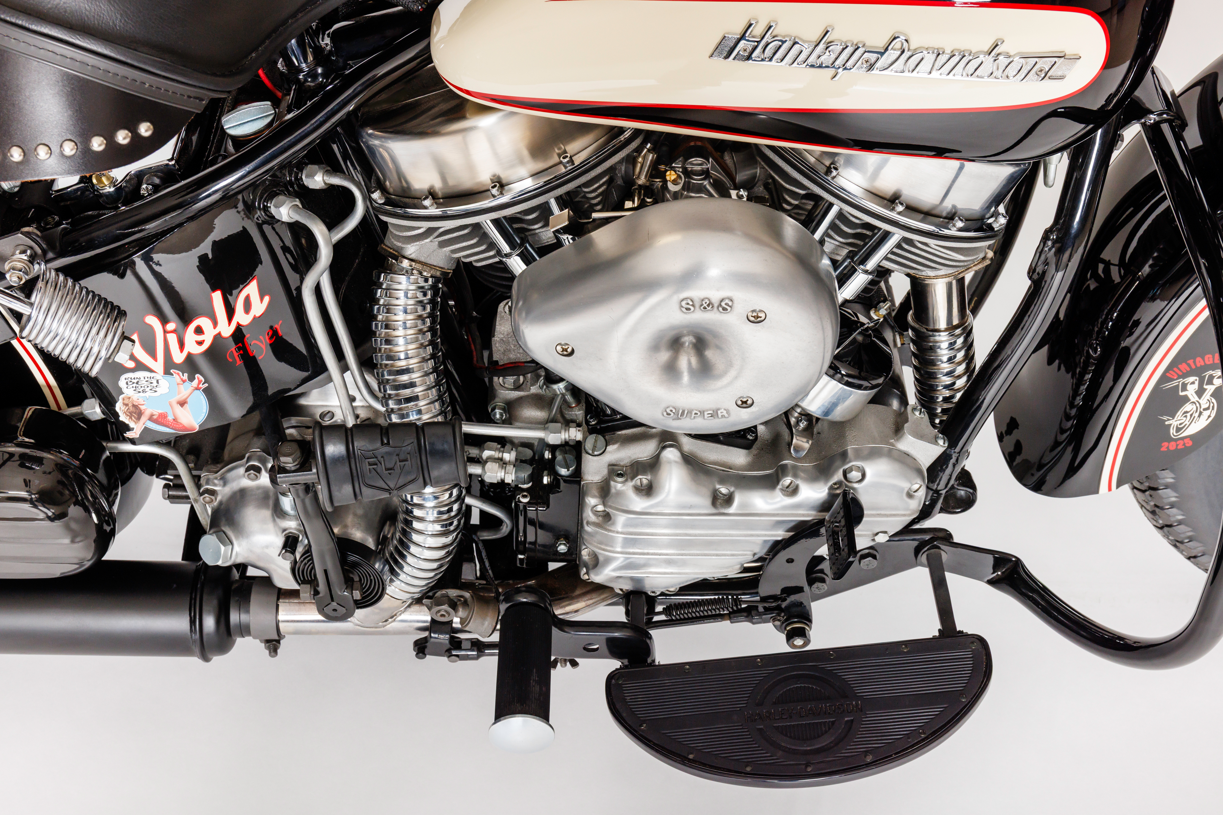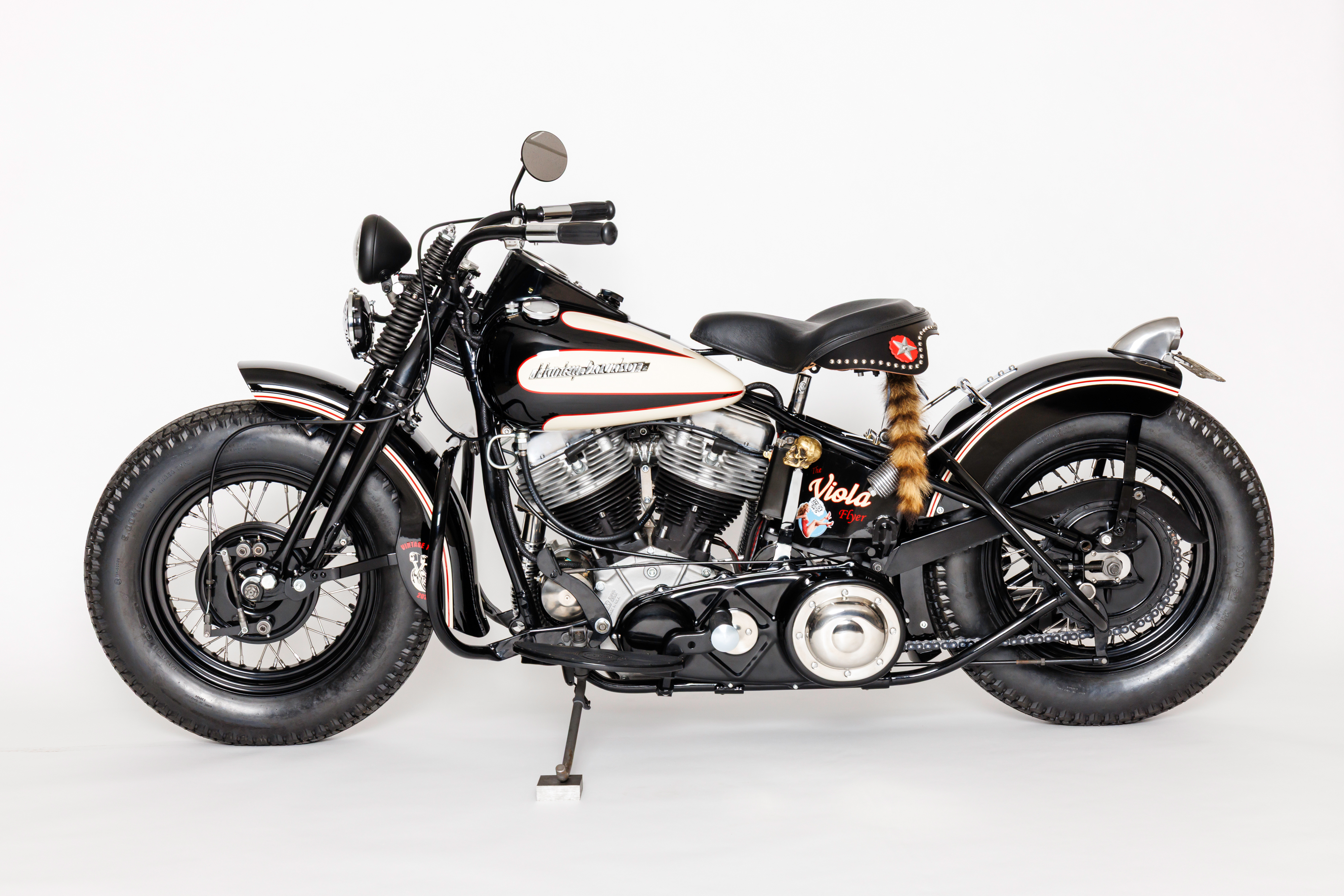 Chris built an S&S 93" with a 4 speed transmission on a stock 1949 H-D® frame with spring fork suspention and complimented with traditional cutdown fenders, a 1954 tank set and a 1949 oil tank. Paint was taken care of by Jamie Denholm of Rapid City, SD.