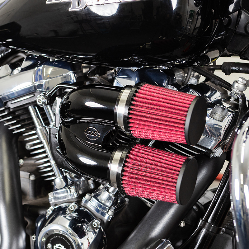 Air flow is everything in a performance engine and naturally, it begins at the air filter. Factory units are downright boxy and can be very restrictive. The S&S Cycle Tuned Induction Air Cleaner uses two laser cut and highly engineered tubes merged into a single collector and fed by a pair of high flow air filters placed directly in unobstructed air stream. The end result is maximum performance for your engine and a stylish package.